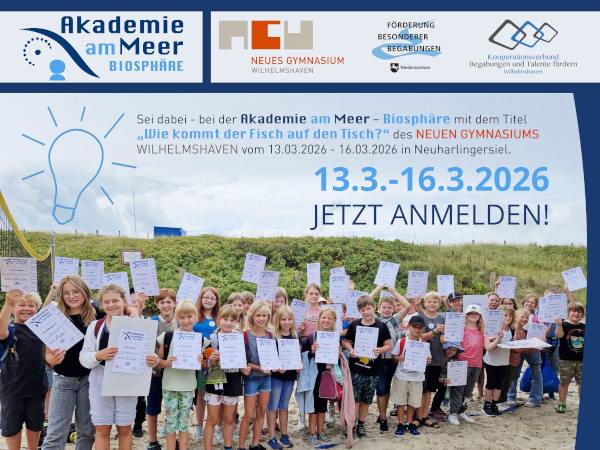 Sei dabei - bei der Akademie am Meer - Biosphäre mit dem Titel „Wie kommt der Fisch auf den Tisch?" des Neuen Gymnasiums Wilhelmshaven vom 13.03.2026 bis 16.03.2026 in Neuharlingersiel.