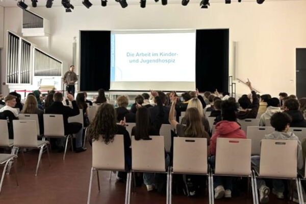 Erinnerungsgartens und des Sterbezimmers sowie die vielfältigen Aktivitäten wie Karneval im Hospiz. Überrascht waren die SchülerInnen von der geringen Anzahl an Zimmern (nur acht) und den hohen Kosten, die durch Spenden in Höhe von 800.000 € gedeckt werden müssen. Die Reaktionen waren vielseitig: Anfangs waren viele traurig oder auch nachdenklich. Doch im Gespräch mit dem Hospiz-Angestellten Herrn Tibbe, der die Fragen der Schülerinnen und Schüler geduldig und sachlich beantwortete, entstand eine lebhafte und engagierte Fragerunde. Dieses Projekt hat den Jugendlichen wichtige Einblicke in das Thema Tod und Trauer ermöglicht und zeigt, wie wertvoll Empathie, Verständnis und offene Gespräche sind. Wir sind stolz auf das Engagement unserer Schülerinnen und Schüler, sich mit solchen wichtigen Themen auseinanderzusetzen!