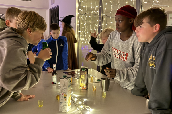 Als schließlich auch die „Hogwarts-Küche” geöffnet wurde, eilten alle hungrigen Schülerinnen und Schüler herbei, um gemeinsam z. B. Schokofrösche und Laugenspinnen zu schlemmen. Es wurde miteinander gespeist, gelacht und sich gestärkt, denn wie wir alle wissen, lässt sich auf leeren Magen schlecht zaubern. Doch eine echte Harry-Potter-Nacht wäre keine echte Harry-Potter-Nacht, wenn nicht noch mehr Überraschungen auf dem Programm gestanden hätten!