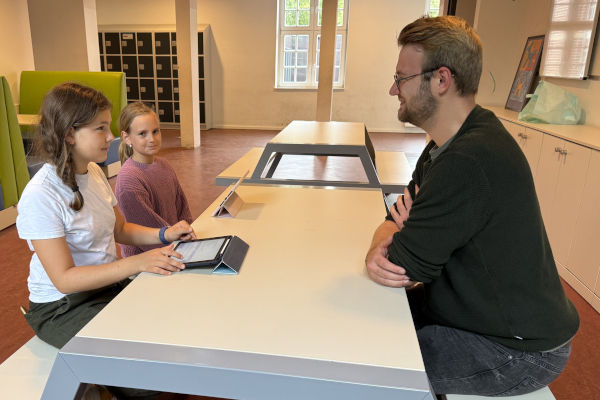 Er ist sehr gerne hier an der Schule und findet das Kollegium und die Schüler sehr nett. Außerdem mag er das Schulgebäude, besonders, dass die Schule so modern ist. Für ihn ist die ideale Schülerschaft ausgeschlafen, freundlich, motiviert und interessiert.