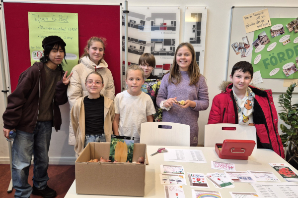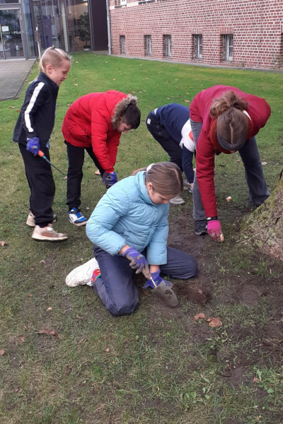 Dank des großen Einsatzes der Umwelt-AG beim Projekt „Tulpen für Brot“ können wir uns schon auf die vielen Tulpen der Tulpenpatenschaften freuen, die im Frühjahr hoffentlich unsere Schule schmücken werden.