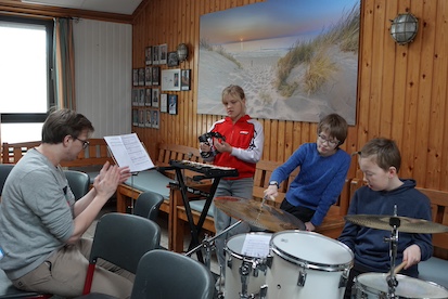 Für die Schülerinnen und Schüler, die nur in einem der Ensembles mitwirken, hieß es am Sonntagnachmittag schon wieder Abschied nehmen. Denn das Orchester, die Musiklassen 5b und 6b sowie die Grace Notes und die Combo wollten im Inselheim proben. Am Montag kam der zweite Törn auf der Insel an, sodass es nun mit 126 Leuten sehr gut gefüllt war. Frau Fuchs, die die Törnleitung im zweiten Törn innehatte, hatte die Organisation aber ebenso gut im Griff, wie Herr Süß im ersten Törn, sodass die gemeinsame Zeit entspannt und schön verlief. Bis Donnerstag erklangen also neue verheißungsvolle Töne im Inselheim, die durch dessen Räume bis über den Deich getragen wurden und allen Musikerinnen und Musikern Freude und hartnäckige Ohrwürmer brachten. Die vollendeten Versionen der geprobten Stücke hörten die Ensembles aber wieder erst beim gegenseitigen Vorspielen am Mittwochabend.