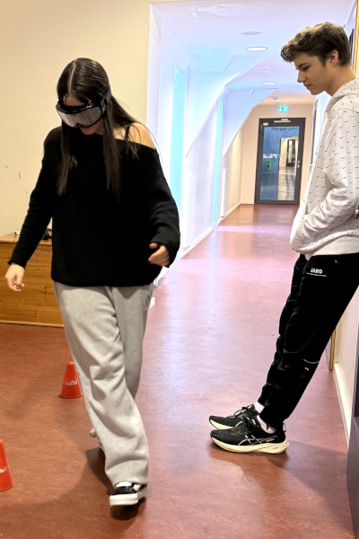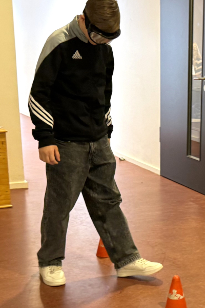 Die letzte Station war für die meisten die beste Station: die Rauschbrillen! Das sind Brillen, die simulieren, wie die Sicht eines Betrunkenen ist. Nacheinander setzten wir die Brillen auf und mussten einen Slalom absolvieren und anschließend probieren, einen kleinen Ball zu fangen. Wenn wir diesen nicht gefangen haben sollten, mussten wir ihn aufheben und ihn zum Schluss in eine ausgestreckte Hand legen. Nicht so einfach...