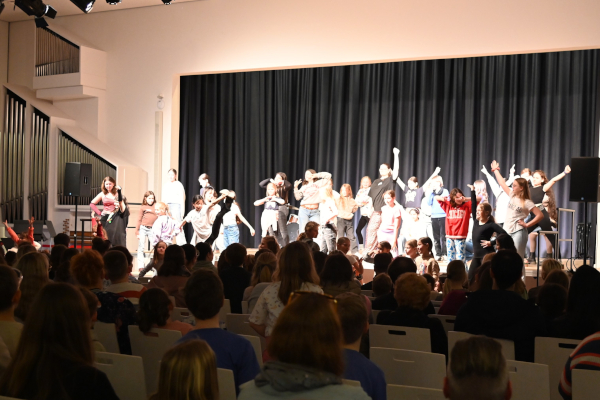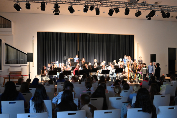 Am 2. April fand ein ganztägiger Musikworkshop an unserer Schule statt, an dem über 60 interessierte Grundschüler*innen aus den Klassen 3 und 4 teilnahmen. Musikalisch vorgestellt haben sich die Tanz-AG unter der Leitung von Frau Iwersen,die Bläserklassen-AG Young Brazz, von Frau Linster betreut wird , sowie der Chor der Klassen 5-8 Grace Notes, geleitet von Frau Meyer-Rasche und Frau Kollenbach. Insgesamt waren somit etwa 150 Kinder und Jugendliche beteiligt.