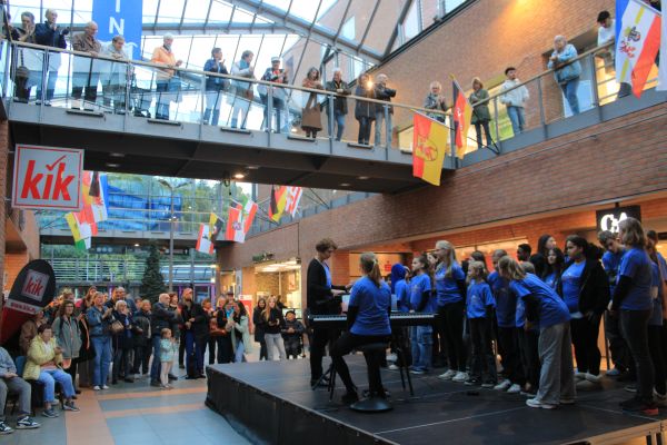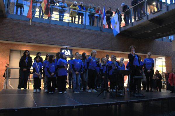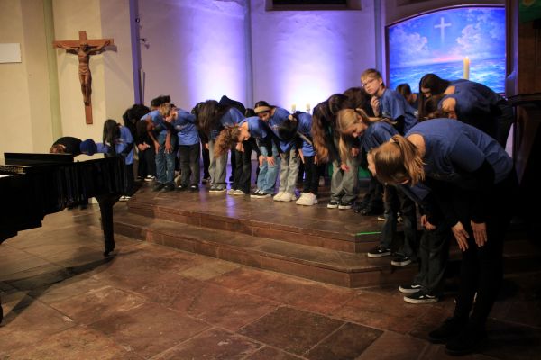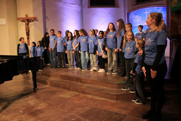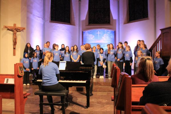 Der Abend begann um 18 Uhr nach einem gemeinsamen Einsingen aller Chöre in der Christus- und Garnisonskirche eine Stunde zuvor. Der erste Auftritt der Grace Notes war um 19 Uhr in der Nordseepassage, den vor allem die neuen Chormitglieder der fünften Klassen aufgeregt entgegenblickten. In dieser neuen Chorkonstellation, so betonte Frau Kollenbach zu Beginn des ersten Auftritts, hatten die Grace Notes nämlich nur dreimal proben können. Dennoch boten sie ein gar nicht so leichtes Programm dar. Dabei wurde der Chor auch von ehemaligen Sängerinnen und Sängern unterstützt, die in diesem Schuljahr in den Chor der älteren Jahrgänge des NGW gewechselt sind und für die dieser Abend der letzte Chorauftritt mit den Grace Notes bedeutete. Passend zur Jahreszeit sang der Chor zuerst ein Herbstlied zu einer Melodie der Band Maroon 5. Mitgrooven konnte man beim darauffolgenden Kanon „The rhythm of life“ und viele bekannte Lieder aus dem „Phantom der Oper“, „Rent“ und dem „König der Löwen“ erklangen in einem Musical Mashup. Besonders berührte das schöne „Abendlied“ von Christopher Hiller, mit dem die Grace Notes ihre Darbietung abschlossen. Dieses Programm präsentierten die Schülerinnen und Schüler anderthalb Stunden später mit sogar noch mehr Energie und Begeisterung aber ganz anderer Akustik in der Kirche.